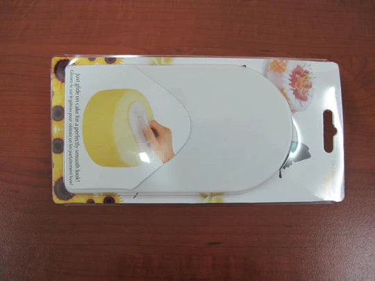 Spread your Sugar dough and Icing evenly on the Cake! Use the plastic dough and icing spreader قومي بمدّ العجينو أو الكريما بشكل متساوي على قالب الحلوى استخدمي مسطرين البلاستك الخاص لذلك