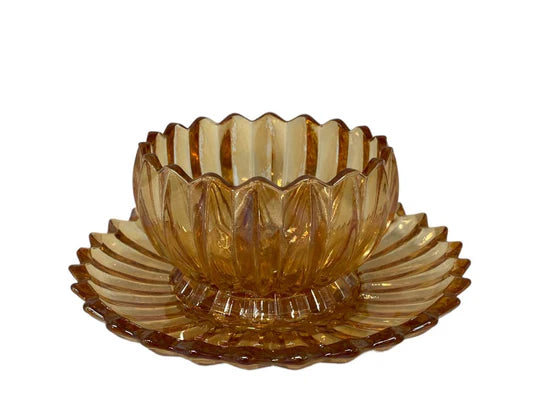 Glass Amber Color Set of 6 Bowls + 6 Saucers