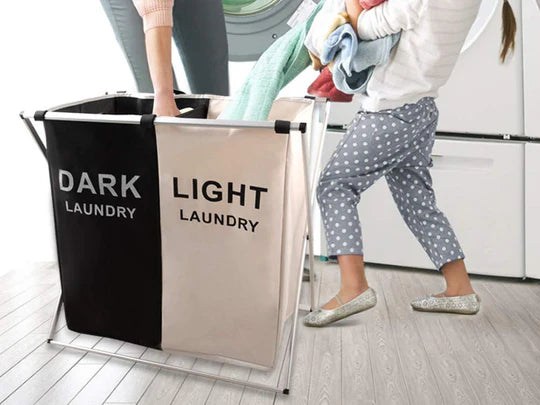 Laundry Basket 2 Section Hamper Washing Storage Basket