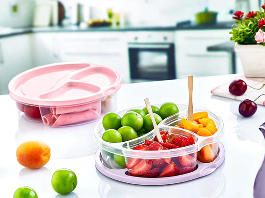 تبروير مدور مقسوم صغير حافظ على الفواكه و الخضار طازجة في البراد السعة: 0.75 ليتر
