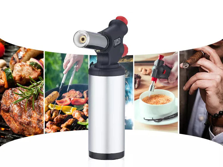 Burning Torche Refillable Kitchen Torch with Safety Lock and Adjustable Flame for Creme Brulee, Desserts, BBQ and Baking حراقة حلو حراقة قابلة لاعادة التعبئة مع قفل و تحكم بقوة النار للكريم بروليه والحلويات و جميع أنواع الطعام
